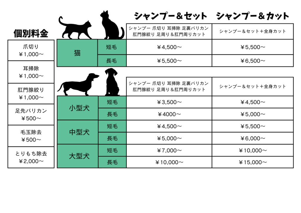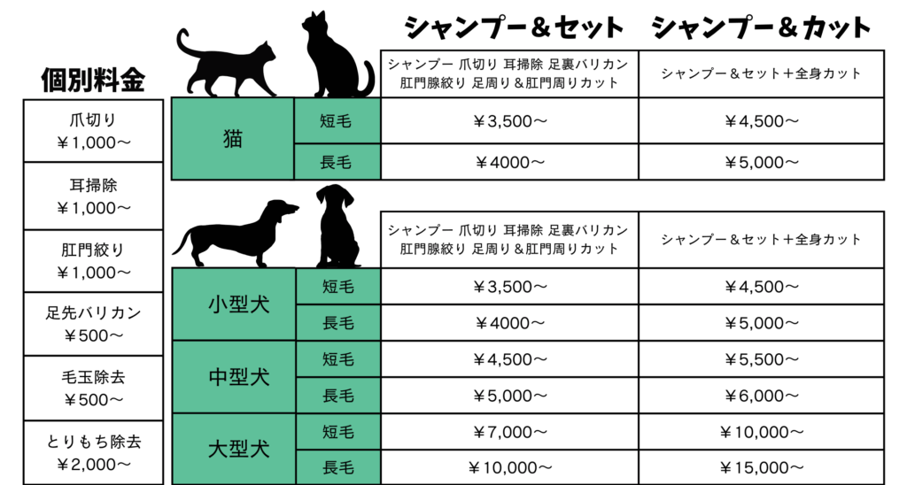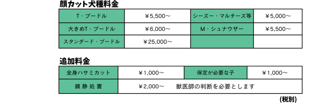 トリミング料金は以下をご覧ください。(あくまでも目安です)